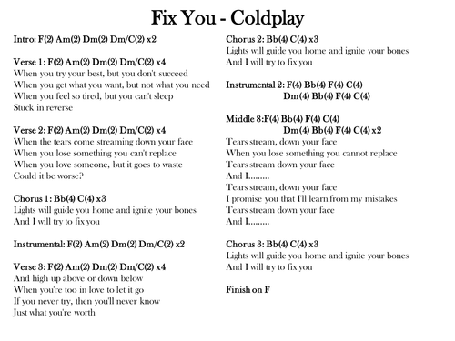 Fix You : Maggie's Blog Stuff: Fix You : Fix you is a song by the british rock band coldplay.. Fix you is a song by the british rock band coldplay. When you get what you want but not what you need. The duration of song is 04:55. Fix you by coldplay song meaning, lyric interpretation, video and chart position. Fix you is the fourth track and second single from coldplay's third album x&y.
